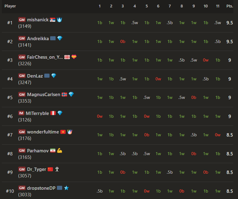 Alexey Sarana won the first new-edition Titled Tuesday on September 2nd with a score of 9.5/11, as the only undefeated player in the tournament. chess.com had announced changes to the format of their flagship event last week, the most notable of which are that the time control would be changing from 3+1 to 5+0, and it will only be held once per week instead of twice. That led to the biggest criticism, which is that a single, fixed time slot would make it harder for players from all geographies to participate in the 11:00 a.m. ET event.