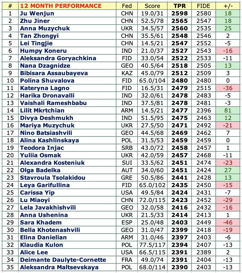 The Best Performers of Women’s Chess: a 12-month Collection