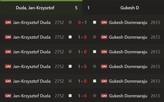 The match featured a 3m + 2s time control. Despite a strong start for Gukesh, winning the first game in 45 moves, Duda took control of the match in no time. Being a blitz specialist, Duda dominated the next four games, sealing the match in his favour with a game to spare. Because it was an exhibition match, the players went on to play the 6th game, which was again won by Duda, securing a decisive 5-1 victory over the Indian prodigy. Duda’s tactical sharpness and speed overwhelmed Gukesh as he lost a couple of the games either on or because of low time. Extrapolated from Gukesh’s performance in Zagreb at the GCT rapid and blitz tournament, the scoreline against Duda was not a surprise for many critics. With this display, the classical world champion’s weakness in the fast time controls got exposed further. However, fans continue to root for the world champion, who is only 19 and still has plenty of room to grow.